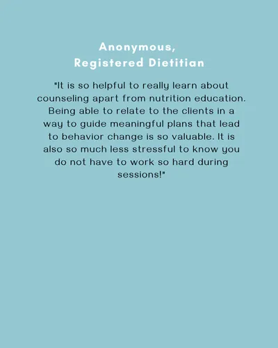 Driven by her belief that effective coaching skills are paramount to client success, she has become a sought-after mentor. She is the founder and CEO of the Nutrition Counseling Academy. She believes that a practitioner's nutrition knowledge is just as important as their counseling skills to support behavioral changes.