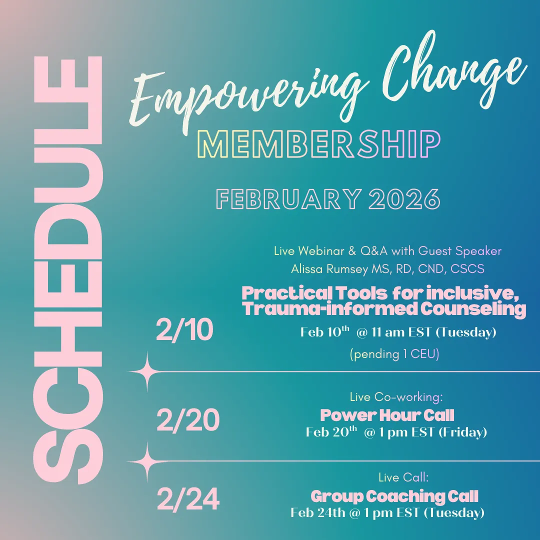 For less than the price of a single CEU course, join the membership that’s changing how dietitians show up, lead change, and finally feel confident counseling for behavior change.