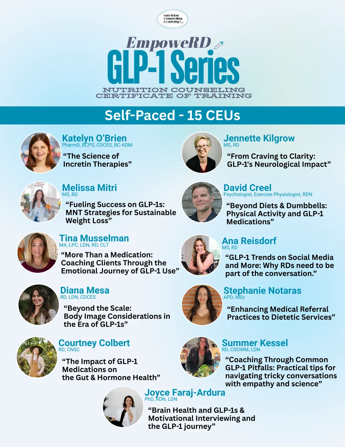 GLP-1s are reshaping the future of weight and metabolic care. With this training, you’ll stand out as a trusted, ethical, and well-rounded provider in a space that desperately needs skilled, person-centered dietitians.